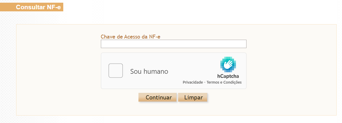 - Informe a chave de acesso e código captcha e clique em “Continuar”.