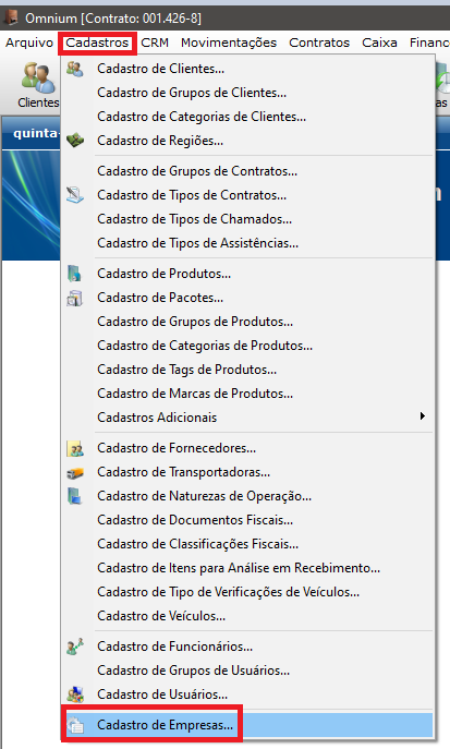 Acesse o menu Cadastro > Cadastro de Empresa > Opções.
